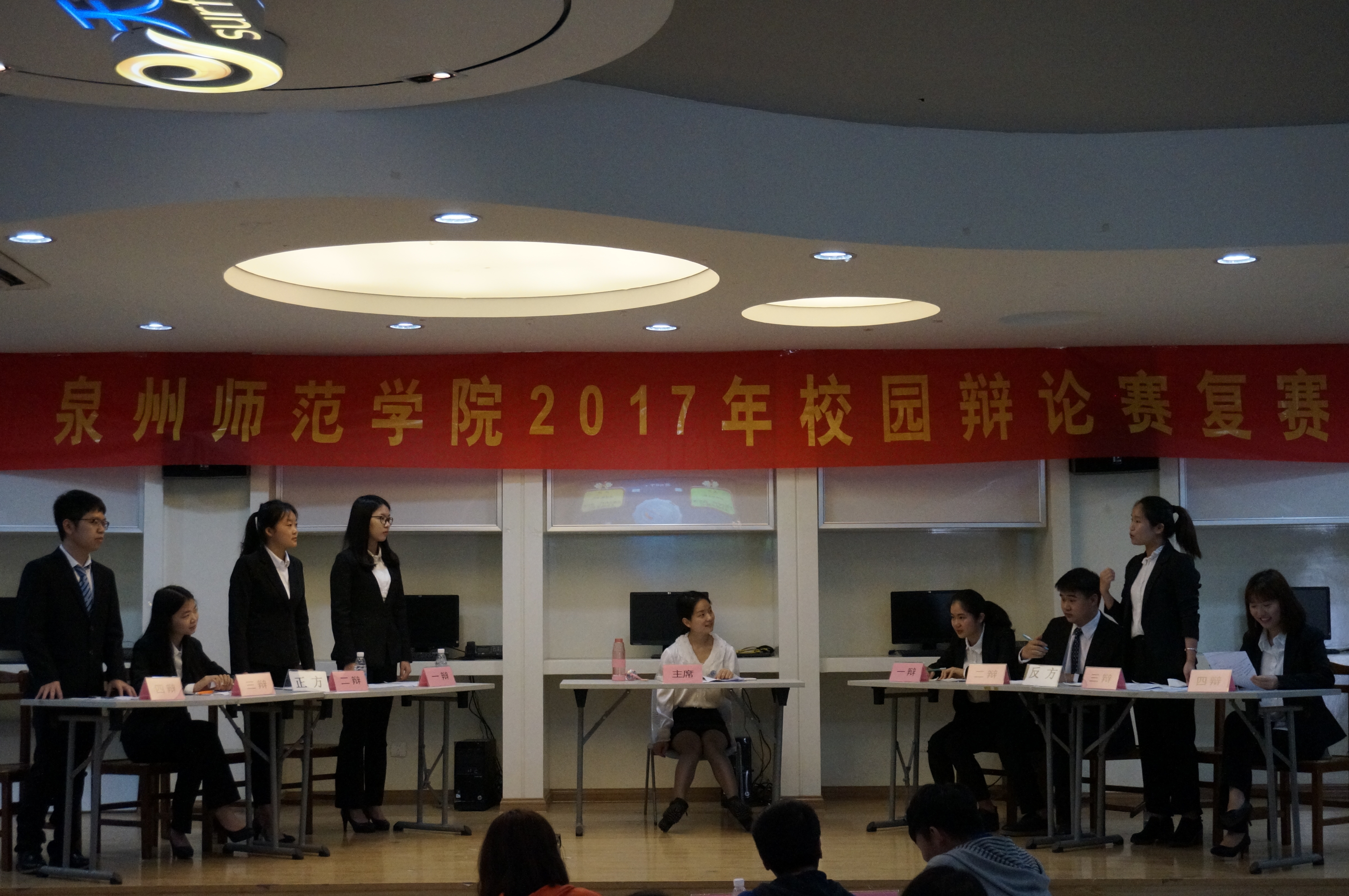 本报讯(记者 刘嘉敏 詹雅芳 叶凤珠 摄影记者 陈小星)4月15日上午,第三届校园辩论赛复赛在白宫体验厅如期举行。本次比赛邀请校级辩论队队长王宇及翁森、汪聪惠两名队员担任评委。