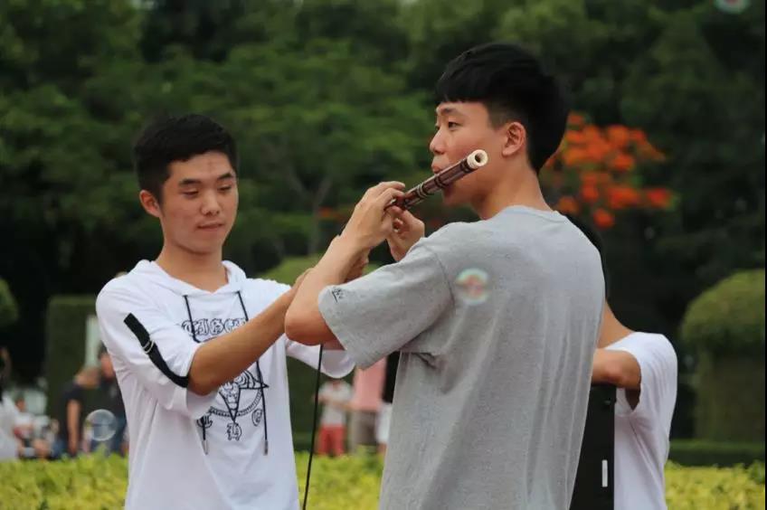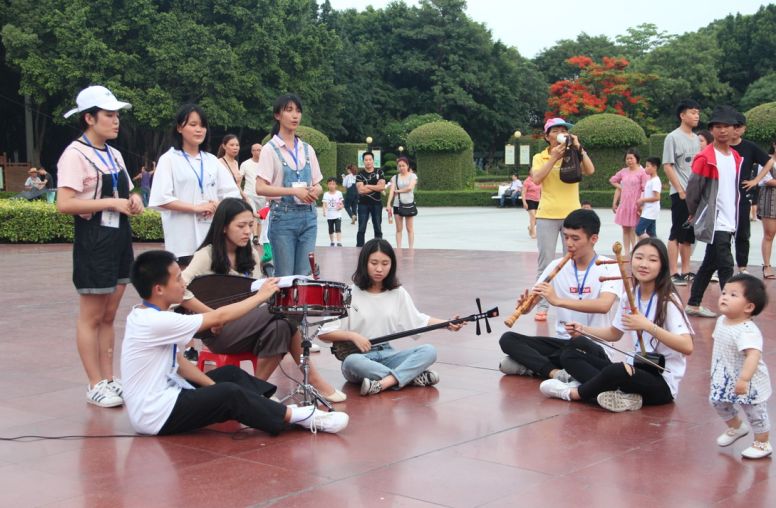 活动伊始,志愿者们带来的流行歌曲、器乐演奏等节目点燃了现场的气氛,精彩的表演将公园里的游客都吸引了过来,我院南音专业的同学们表演了《直入花园》、《梅花操》等南音经典作品,古朴幽雅的乐声瞬间吸引了在场市民和孩子们的注意力,将现场的气氛推向高潮,现场的观众也纷纷和志愿者们讨论关于人类非物质文化遗产——千年古乐南音的相关文化知识。在亲切而自然的交流中,不知不觉就将南音这一独居魅力的海丝文化最直接有效地推广给了市民朋友们。