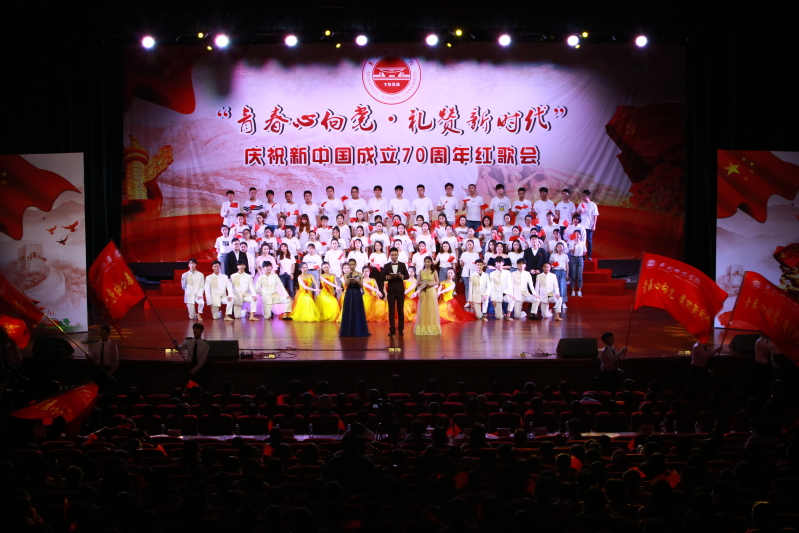 开幕式后由音乐与舞蹈学院承办的红歌会作为本届艺术节开场活动受到了广泛赞誉,同学们用美丽的歌喉展现我校大学生的青春风采,唱响时代主旋律,唱响青春最强音。一首《不忘初心》让我们重温了红军战士用生命和热血铸就的雄壮历史,重温了革命先辈用理想和信念丈量的伟大远征;一首《爱我中华》融入了马林巴伴奏,表演形式独具匠心,雄壮嘹亮的歌声唱出了团结、唱出了力量;一首《保卫黄河》高昂有力,勾起人们对过去那些峥嵘岁月的回忆;一首《强国一代有我在》振奋人心,引起大家对未来美好幸福生活的向往……最后一曲《我和我的祖国》以热情澎湃的歌伴舞形式带动全场师生起立,挥舞手中国旗,一同高歌抒发心中对伟大祖国深沉的热爱,将整场红歌会推向高潮,