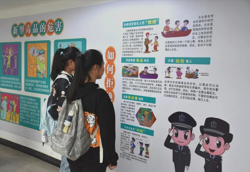 宣教室设有禁毒宣教图展区,详细介绍中国禁毒史,宣传禁毒法律法规和国家禁毒政策;案例交流区中典型鲜活的禁毒案例,让学生们深刻认识到防毒、禁毒的重要性;漫画展示区用生动活泼的形式科普毒品种类和毒品预防知识,提高学生们对毒品的防范能力。展区内容全面丰富,吸引学生们驻足观看并引起热烈反响,学生们纷纷表示要积极参与禁毒斗争,向身边的家人和朋友宣传禁毒知识。