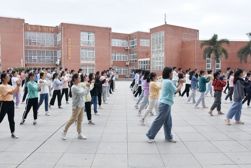 据悉,此次广播体操训练由学院团委会负责。每天早上六点四十分,领操员、督操员和运动员们在邱天生实验楼前集合开展体操训练。运动员们反复地练习动作,用水瓶作为道具辅助训练,保持动作力度;领操员统筹全局,指导队形变换,调整体操队列,耐心讲解动作,力求每个动作整齐划一;督操员穿梭在运动员之间,及时调整错误的动作,力争在运动会上呈现出最好的效果。