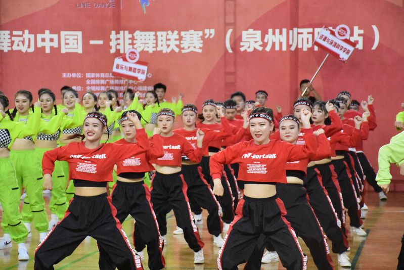 此次比赛由国家体育总局体操运动管理中心、全国排舞运动推广中心主办。本次比赛包含5类项目,大集体自选、小集体自选、小集体串烧、单人和双人。资环学院代表队在集体赛、混合双人赛和个人赛上精彩表演赢得了评委的赞赏和观众的喝彩。在集体赛中,学院队员们统一身着靓丽的红色服装,整齐划一的动作,自信的笑容,动感的舞姿,给观众们带来一场视觉盛宴;在混合双人赛中,邓乐仪和林雨叶的双人平滑点燃了现场气氛,赢得了观众的热烈掌声;在个人赛上,柴碧晨伴着曳步曲风舞动起来,流畅潇洒的动作引得在场观众的阵阵喝彩。