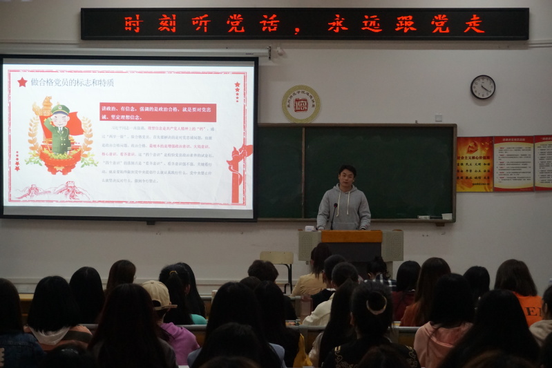 首先,陈杰松老师在此次开班大会中强调,各位学员要端正入党动机,端正入党态度,严格遵照入党规章制度,积极主动争取加入中国共产党。接着,陈老师介绍了本次培训的教学安排、管理规定、入党要求等,希望入党积极分子严格按照培训宗旨,遵守管理规定,顺利完成培训。陈老师联系时事热点,从青年与党的关系、青年要在理想信念的塑造和实践中成长成才、入党的基本条件、端正入党动机与遵照入党程序等各个方面与同学们进行深刻探讨。最后,陈老师号召在座的全体同学还要进一步坚持全面发展,学好党的理论知识和专业知识;要坚持理论联系实际,投身实践,增强历史责任感和使命感,肩负历史使命;牢记党的宗旨,发挥模范带头作用和示范作用。