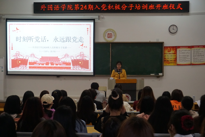 11月12日下午,外国语学院在外文楼112室举办第24期入党积极分子培训班开班仪式。本次开班大会由辅导员陈杰松老师主持,我院辅导员老师及入党积极分子参加。