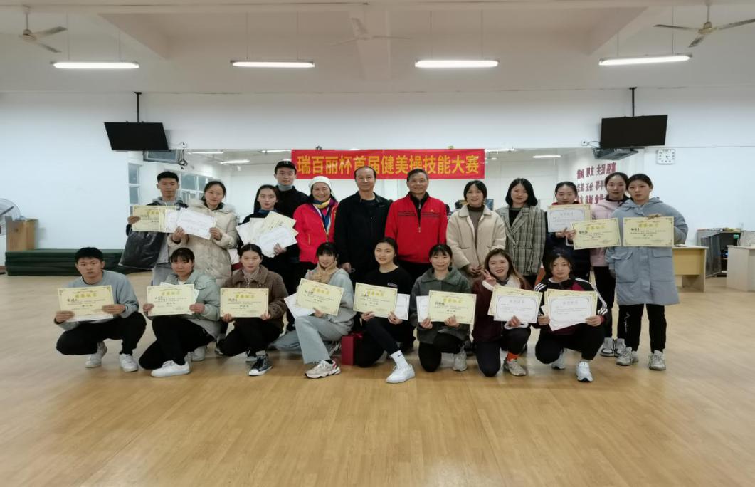 随后举行的健美操技能赛也在12月17日进行,本次健美操赛得到校企合作单位瑞百丽健身学校在赛事编排、赛事赞助、赛事组织等方面的大力支持,本次大赛共有五个项目,分别是第三套大众健美操锻炼标准—三级操、自选曲目、趣味俯卧撑、平板支撑和波比跳。经过将近一个月的时间准备,同学们将自己的努力成果展现了出来。最终,来自17社体的杨惠、王映玥、沈宏伟三位同学分获总分第一、二、三名。