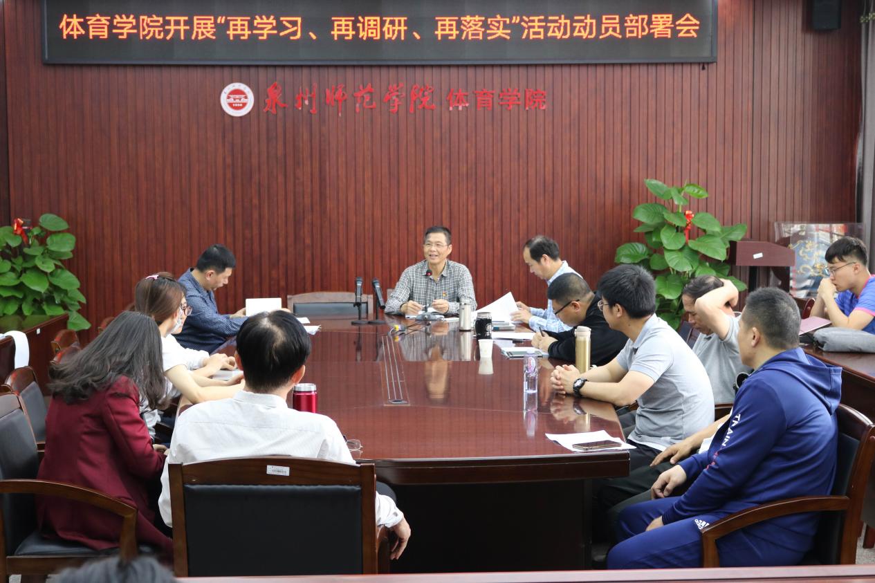 4月1日下午,体育学院召开“再学习、再调研、再落实”活动动员部署会,学院党政领导、全体教职工党员参加会议,会议由院党委书记卢进民主持。