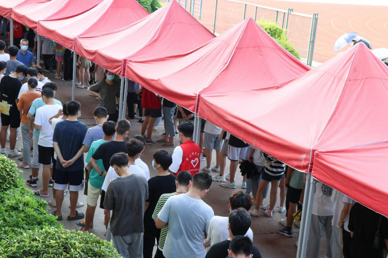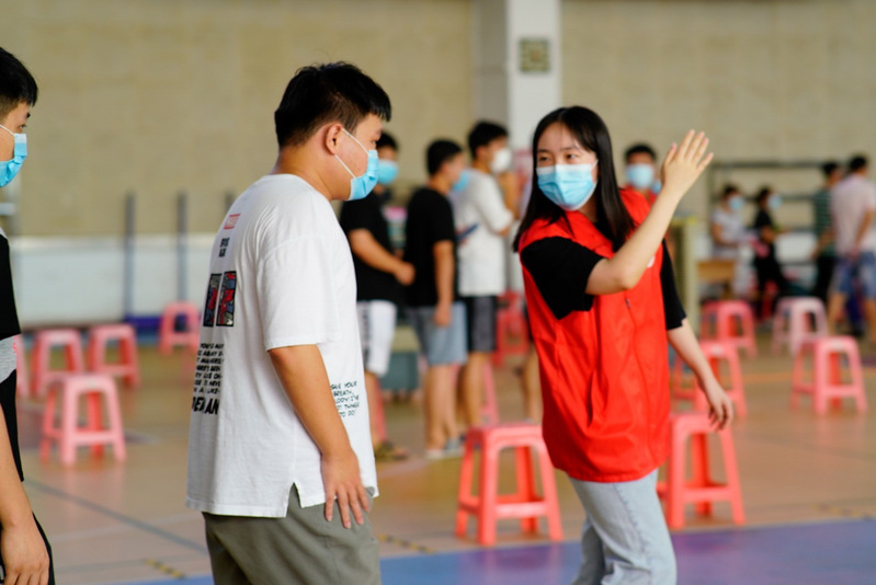 为进一步强化新冠肺炎疫情防控措施,切实保障广大师生员工的健康安全,我校于9月15日下午13时30分至晚上,面向我校师生在陈伟利体育馆和操场开展全员核酸检测的工作。由校青协学生干部和各班班委组成的核酸检测引导志愿者突击队迅速集结,第一时间赶往陈伟利体育馆检测点,助力学校高效完成核酸检测工作。