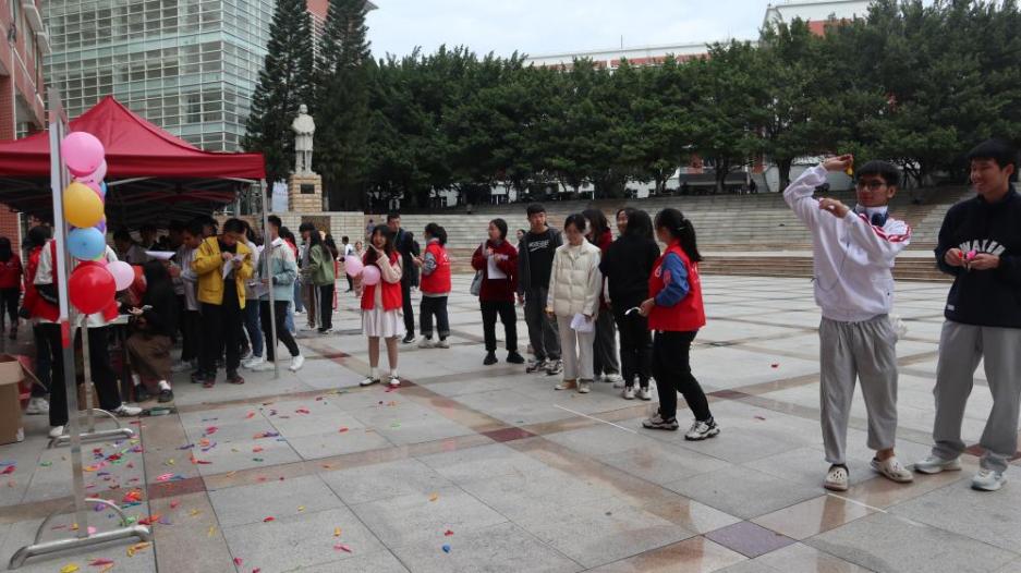 在击败“HIV”小游戏中,同学们纷纷化身“神枪手”,通过飞镖掷气球的趣味形式来获取答题机会。在气球的爆破声中,志愿者们耐心为大家科普防艾知识。小游戏既活跃了现场的氛围,又点燃了同学们了解和学习艾滋病相关知识的热情。