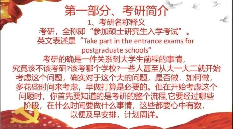 2022年全国硕士研究生招生考试分数线普遍大幅度上涨,有的专业分数涨幅超过10分。当下大势所趋,考研已经被划入了大部分大学毕业生的“人生规划”中,成为了他们必须经历的一道坎。为引导学生树立清晰的考研目标,进行合理的学习规划,及时了解研究生招生政策与备考技巧,在校团委指导下,校学生会组织各二级学院学生会开展2022年度“‘研’途有我,为梦启航”主题线上考研分享会。