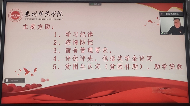 10月10日晚,音乐与舞蹈学院学工办通过腾讯会议于线上组织召开2022-2023学年“新生开学第一课”,我院学工办主任刘晓莹、副主任张甲玉、辅导员李祖阳,全院2022级新同学参会。