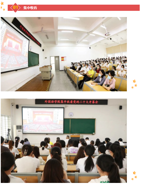 2022年10月16日,党的二十大在北京召开。外国语学院组织师生收看开幕会直播。