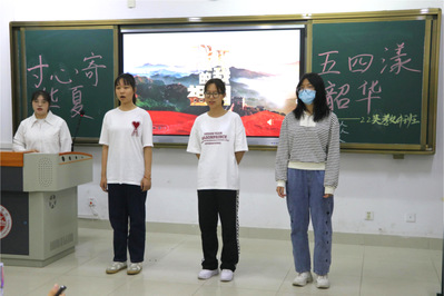 韶华不负春日暖,年少青春正当时。本次团日活动内容丰富,形式多样,活动伊始,2022级英语(师范类)3班首先解释了“什么是五四精神”,让同学们了解到了五四精神的深刻内涵,并合唱了《我的中国心》,表达了对祖国母亲的热爱。2022级英语(师范类)4班的同学朗诵了《青春中国》,开展“弘扬五四精神,谱写青春华章”的故事会,更让我们感受到了无限动力。2022级商务英语1班,进行知识竞答环节,让学生了解“五四运动”这一历史事件,理解“五四运动”的历史意义,这更使得我们明白我们青年是未来的希望,并且观看了短片《奋进吧,中国青年》。