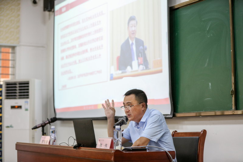 6月8日下午,校党委副书记林伟以《以党的二十大精神为指引,走稳走实就业之路》为题,为外国语学院师生代表讲授思政课。外国语学院党政负责人、全体辅导员、学生代表100多人参加。