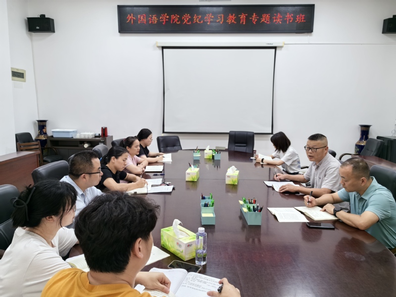 5月31日下午,外国语学院在俊秀外文楼113会议室召开党纪学习教育读书班暨党委理论学习中心组学习会。学院党委委员、各党支部书记参加学习。会议由院党委书记蒋双霖主持。