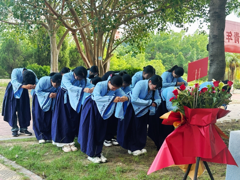 紧接着,在诵读祭文的环节,同学们的声音铿锵有力,充满了对伟大先哲的敬仰之情以及对中华优秀传统文化的向往。随后,进行鞠躬礼环节,同学们动作庄重,以此表达了对孔子教育思想和人格魅力的崇高敬意。