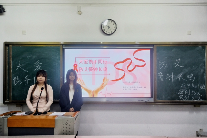 为进一步科普防艾知识,提高同学们的防艾意识,呼吁同学们重视守护自身健康,11月24日晚,文学与传播学院在俊秀东楼教室开展了以“大爱携手同行,防艾警钟长鸣”为主题的院级团日活动。
