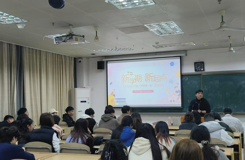 为加强学生思想引领,增强学生安全防范意识,明确新学期目标方向,美术与设计学院于2月16日晚组织开展了2025年春季学期“开学第一课”主题班会,各专业辅导员、学院全体学生参加。