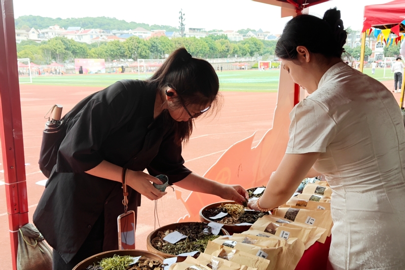 本次活动以“五色五雅”为核心,设置五个特色任务区。古铜区开展“‘铜’心启征途,薪火照新程”活动,以掷骰子答诗词的形式弘扬经典诗词文化;玄黑区“青春逢盛世,翰墨书华章”活动,学子进行团扇DIY创作,融入书法传递美好愿景;靛蓝区“古琴焕新曲,弦音蕴蓝图”活动,以古琴演奏展现传统民乐魅力;朱红区“丹心铸华夏,英雄长流芳”活动,通过制作香囊致敬革命英雄;官黄区“改革开放路,回顾辉‘黄’时”活动,学子现场品茶,感受传统茶文化。