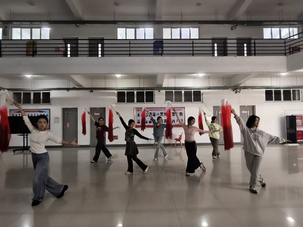 清影舞社的舞蹈训练同步推进,今年以《象王行》为开场曲,发挥传统民族乐器音色特点,展现学子蓬勃朝气。排舞训练也在进行,规定曲目为《朱雀》,采用统一教学模式,通过加强体能、强化肌肉记忆,规范动作、完善框架。