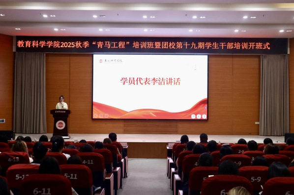 为深学细悟习近平新时代中国特色社会主义思想,全面落实习近平总书记关于青年工作的重要思想,深入学习贯彻党的二十大和二十届四中全会精神,发挥青年马克思主义者培养工程的育人功能,加强对青年大学生的思想政治引领,11月2日,教育科学学院2025年秋季“青马工程”培训班暨团校第十九期学生干部培训班于特教大楼第二学术报告厅正式开班。院党委副书记、纪委书记刘宗安,院团委书记林翠玲以及院团委全体老师出席本次开班式。