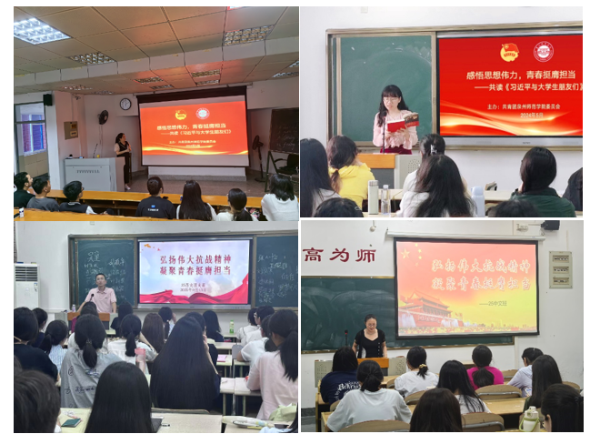 深耕理论经典,筑牢信仰根基。通过组织“共读《习近平与大学生朋友们》”第一、二卷活动,引领青年感悟思想伟力,汲取成长智慧。结合“弘扬伟大抗战精神”专题宣讲有效激发了青年学生的爱国情怀与奋斗精神。