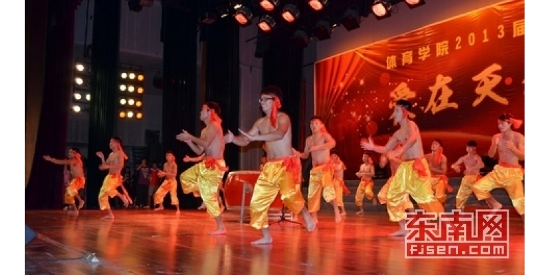 东南网6月8日讯(通讯员 朱洲 罗世雪)6月7日,泉州师院体育学院举办2013届毕业晚会,由21名小伙子表演的泉州经典民俗舞蹈“拍胸舞”惊艳全场。