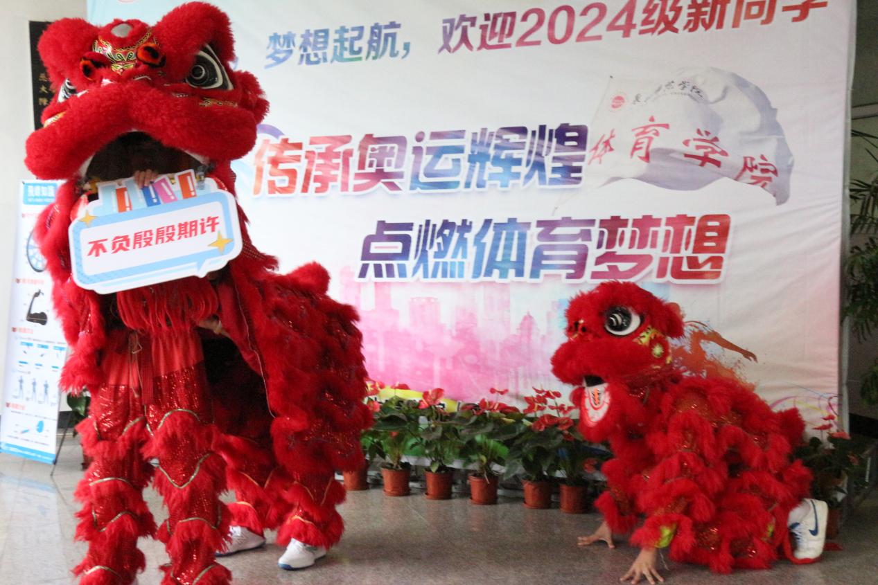 在迎新活动现场,所有师生志愿者们以满腔的热情和严谨的工作态度,化身为新生的引路人,分工明确,从耐心的报到引导到贴心的行李搬运,每一个细节都彰显着学院对新生无微不至的关怀与期待。广场上锣鼓喧天,舞龙舞狮的壮丽场景骤然展开。在传承和展示中华民族的传统文化的同时,展现出体育学院的活力与热情,同时传递出我院对新生未来学业有成的美好祝愿。本次迎新推出一系列匠心独运的特色活动:代表着古代体育项目的“古韵今风,壶中问道——投壶雅趣”,代表着近代体育项目的“翱翔梦想;‘飞’向未来——飞镖竞技”,代表着现代体育项目的“篮下结缘;以球会友——定点投篮”等体育项目,让新生于传统游戏中体会智慧与礼仪的碰撞、在投掷间感受力量与精准的交织、让篮球成为连接心与心的桥梁。签约新程,笔墨间书写青春誓言,共绘体育人生蓝图;愿景书签,珍藏此刻梦想,让每一页都记录着不懈追求与辉煌成就。