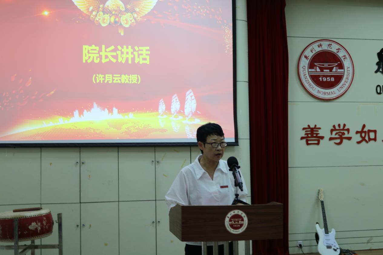 接着,许月云院长为新生们作“心若有灯,道路必光明”的主题分享,为刚迈入大学的同学们点亮一盏“心灯”,希望四年后的同学们能羽翼丰满、展翅高飞。她嘱咐新生们,一是要听党话,跟党走;遵守国法、校规、家规,尊敬师长,爱国、爱社会、爱校、爱家、爱自己;二是要思考人生,明晰方向,树立远大理想,矢志不渝,确定大学每个阶段的目标并坚持力行;三是要坚持知行合一,学好专业知识,丰富实践锻炼,实现从“学会”到“会学”、从“学好”到“好学”的转变。