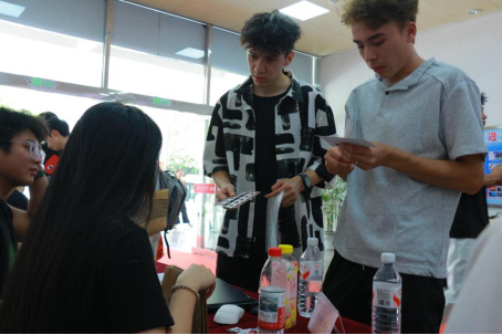 报到现场特设互动体验环节,设置精准投篮、跳绳接力、足球射门等趣味体育项目,志愿者全程引导参与。同时,为每位新生发放“星”形许愿瓶,邀请大家写下大学目标与青春期许,助力他们明确成长方向,以积极心态开启新阶段的学习生活。
