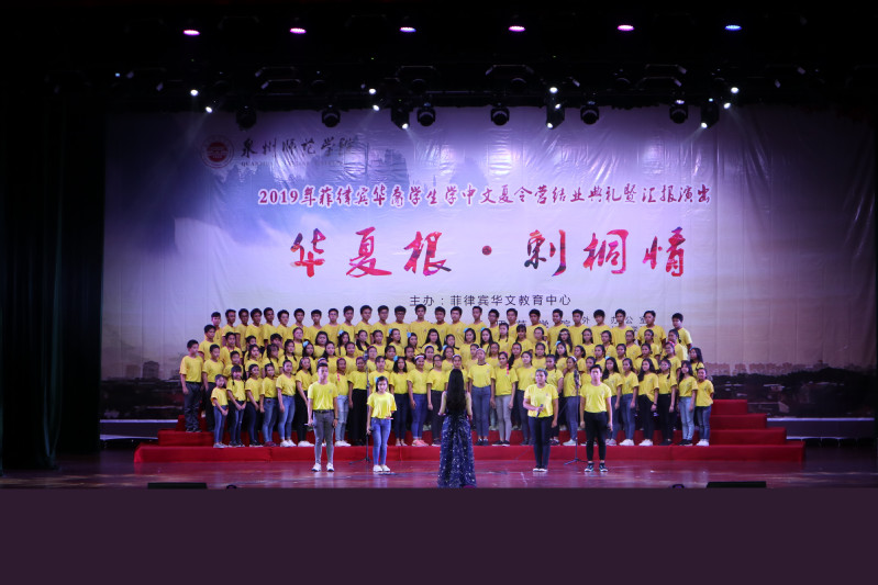 随后,菲华夏令营营员带来了一场精彩纷呈的汇报演出。一曲《蓝蓝泉州湾》拉开了演出的序幕,歌曲唱出了营员们对泉州的喜爱;闽南歌曲《天黑黑》以及闽南童谣联唱,独具闽南特色又充满童趣;颇具菲律宾风情的竹竿舞与动感的现代舞《本草纲目》点燃全场气氛;营员们挑战历史剧《蔺相如与廉颇》,成功演绎了“将相和”;还有干净利落的武术表演和温婉的古典舞表演;最后一曲《送别》更是唱出了营员们浓浓的不舍之情。一个个精彩节目,展示了营员们努力学习的成果,更是饱含着营员们对祖籍国的不舍之情。