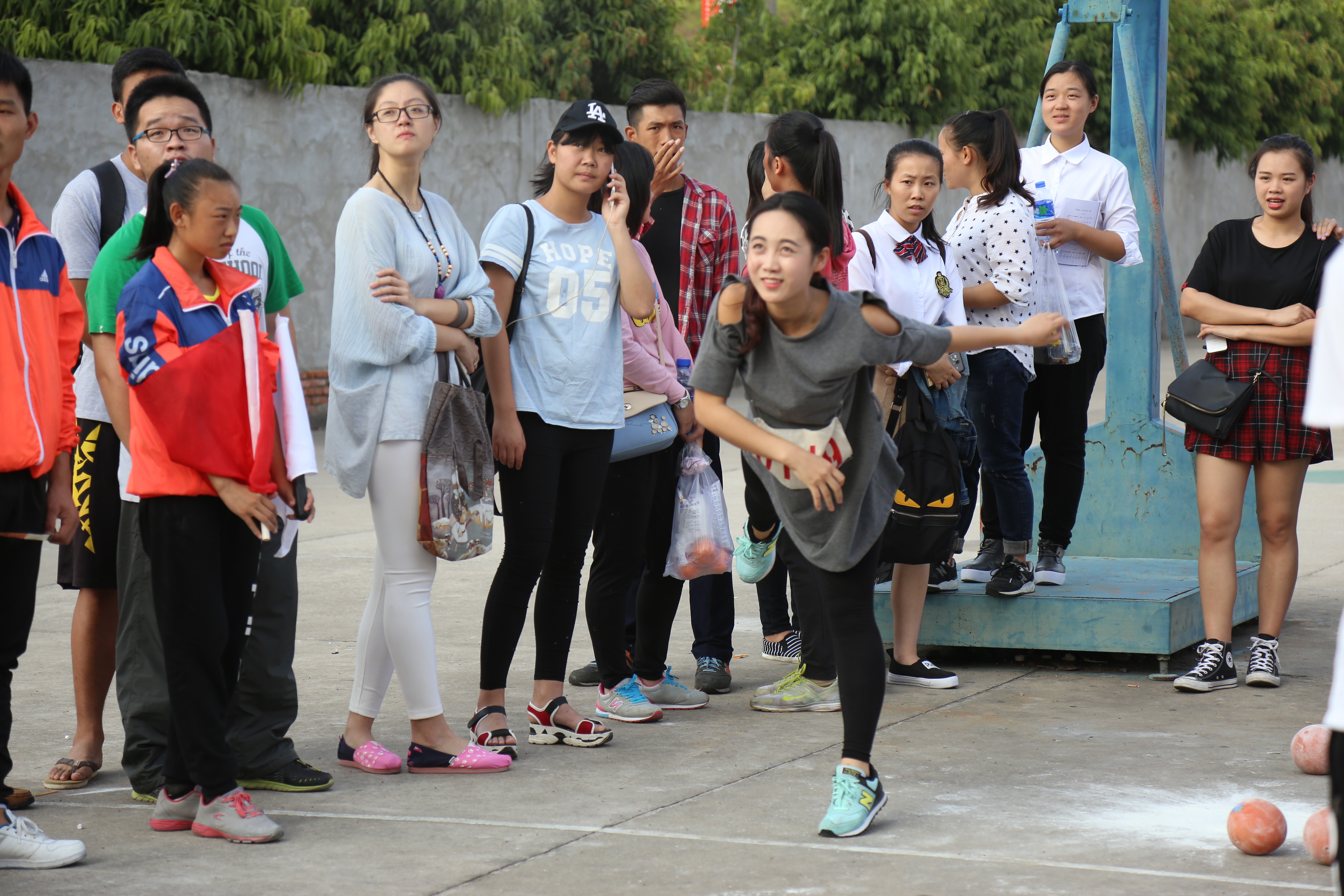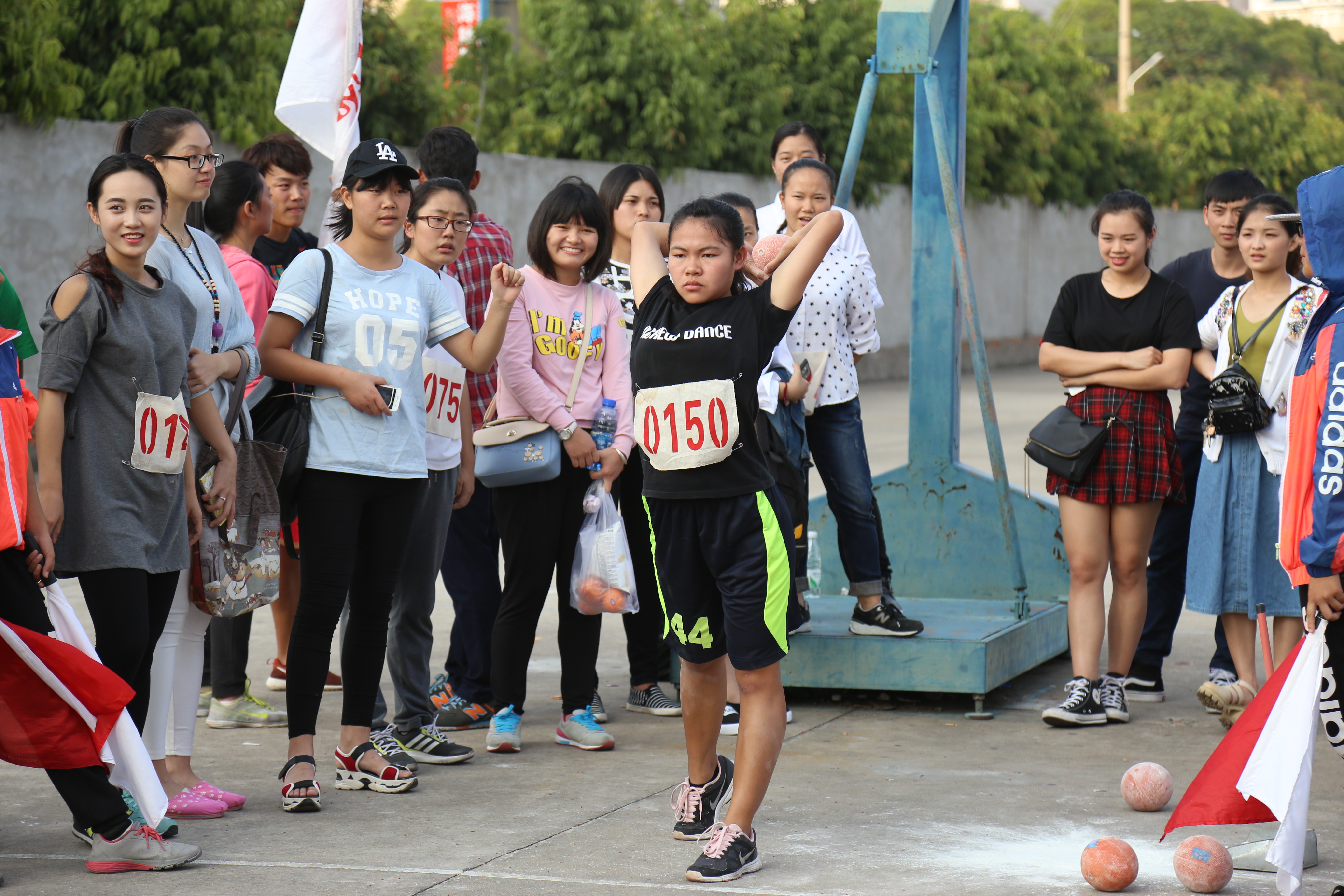 决赛中,廖梦云率先出战。她双手持球,将身体拉成弓形,待身体后仰到极限时,突然起身,后脚一蹬,实心球在空中划过一道优美的弧线,落于11.53m处,在场的所有人不约而同地发出惊呼。随后出场的刘昭君表现同样优秀。她双手持球,将身体下弯,然后猛然起身将球推出,快速的出手速度使得球稳稳地落于10.5m处。