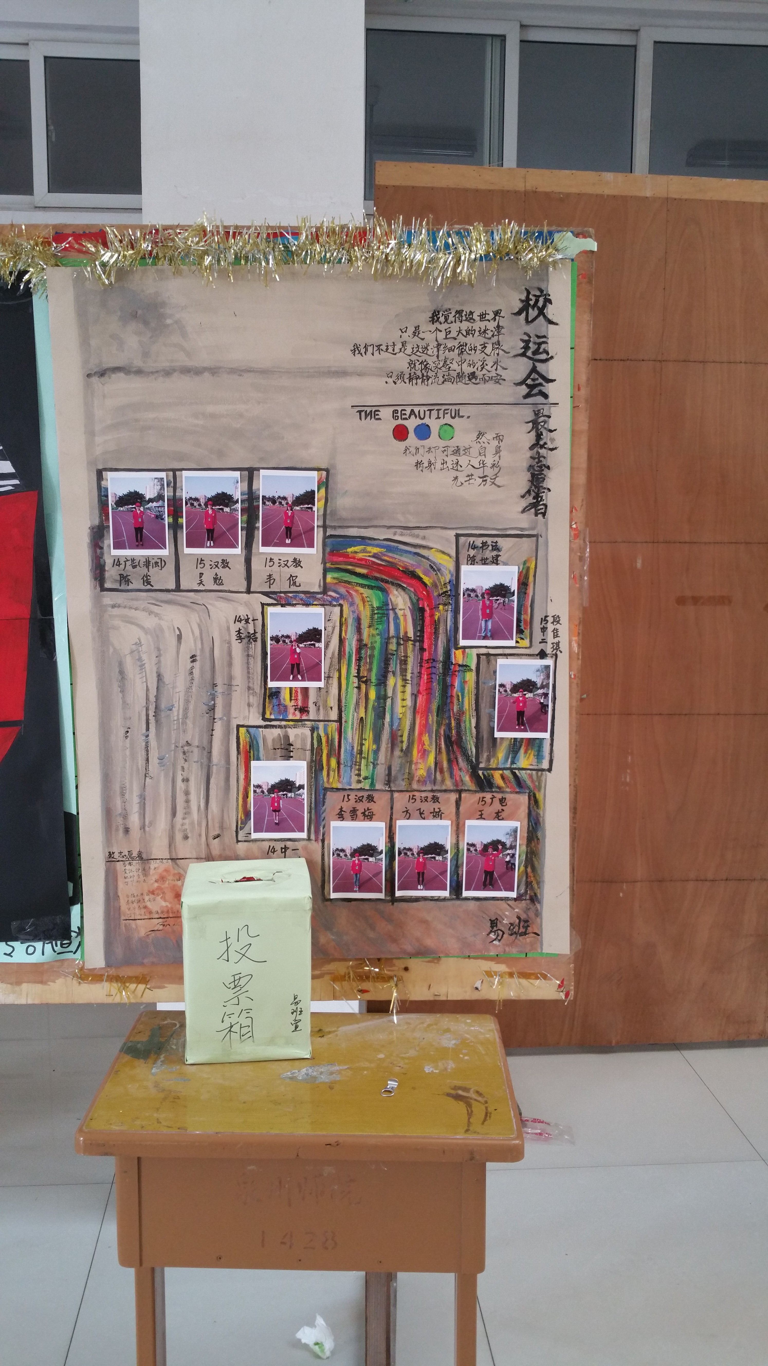 活动前期,我院青年志愿者协会根据校运会期间志愿者们的工作表现,择优推选了10名志愿者进入最终评选。活动期间,以评选“校运会最美志愿者“为主题的线上活动在易班网成功开展,受到了广大师生的热烈欢迎。线下则在俊秀大厅设置展板和投票箱,我院师生通过现场不记名投票的方式选出大家心目中的“校运会最美志愿者”。最后,我院易班工作站全体成员和青协会长公开、公正地进行现场唱票,于18日票选出14中一罗妍誉、14文一李洁荣、15汉教吴勉和15中二段佳琪四人获得“最美志愿者”称号及由易班工作站提供的现金奖励。