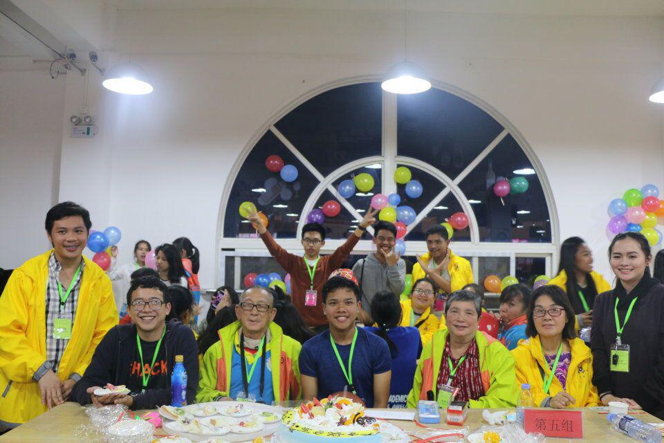 4月8日下午7时,在泉州师院第二餐厅,100位菲华营员、5位带队老师以及15汉教全体实习小老师为菲律宾营员陈威印同学举办生日会。