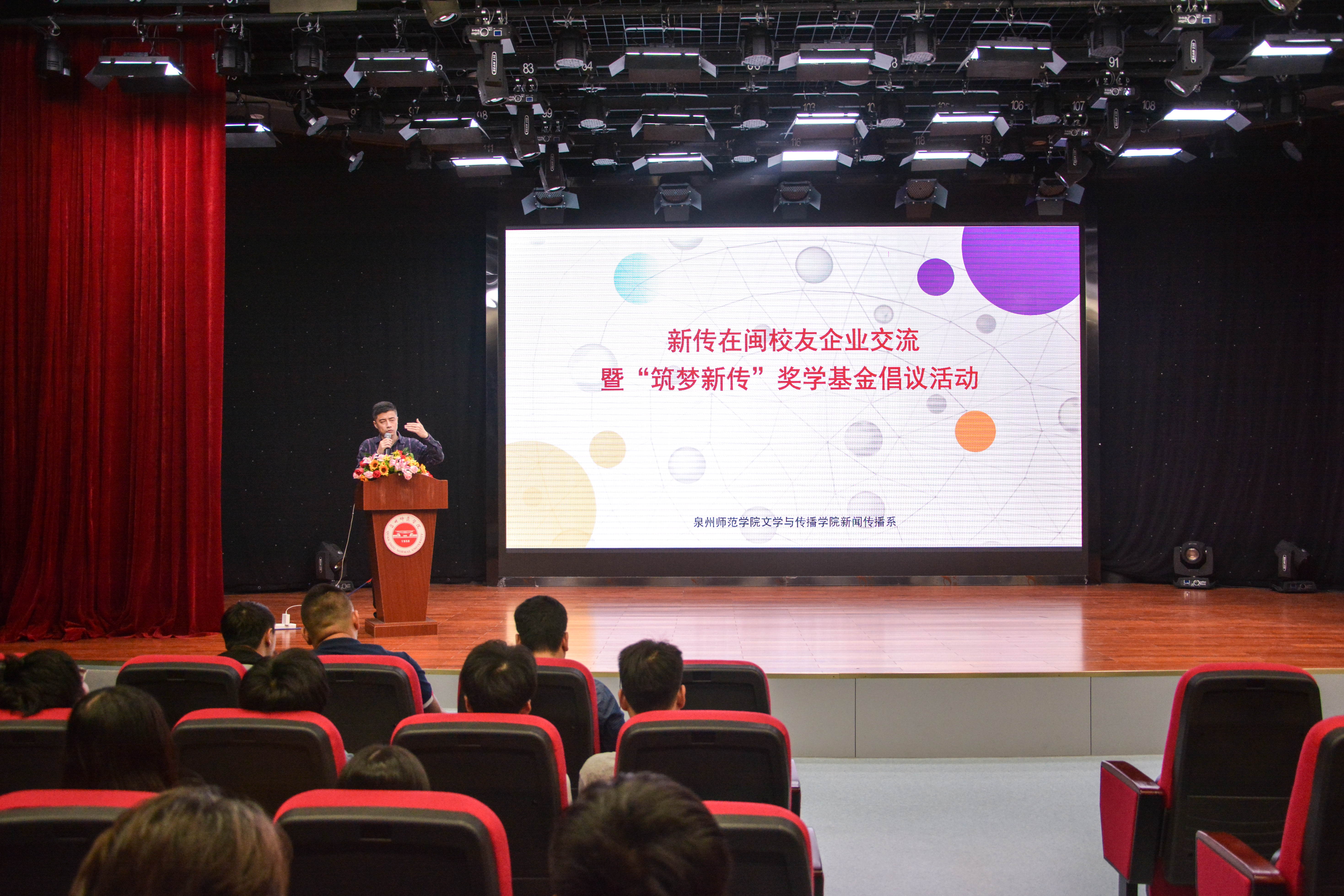 4月27日下午,英国威廉希尔公司官网文学与传播学院新闻系于俊秀演播厅举办了在闽校友企业交流暨“筑梦新传”奖学基金倡议活动。