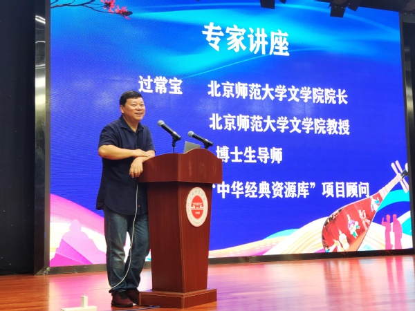 7月6日早,教育部长江学者特聘教授、北京师范大学文学院院长、北京师范大学文学院二级教授、博士生导师、北京师范大学海峡两岸传统文化研究中心主任过常宝教授受邀莅临我院讲学,在文传学院演播厅开展题为《谁的风景 如此优雅——唐诗解读举例》的学术讲座。讲座由我院院长谢英教授主持并作总结,我院古大勇教授、郑亚芳教授、李凤吟老师、黄薇老师及夏令营全体师生出席讲座。