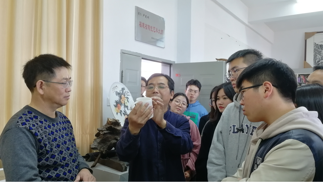 10日上午老师带领同学们去了博物馆和月记窑,倾听陶瓷与德化的历史交织的传承与发展。感受窑洞不一样的“温度”,品味书画与陶瓷碰撞的趣味,感受陶瓷的釉下彩、釉中彩、秞上彩不一样的制作过程与美感。下午师生共同前往德化职业技术学校,参观老师们的工作室并进行教学实际考察,德化美协主席陶瓷艺术大师卢美彬老师们还为同学们讲解了书画与陶瓷之间的联系,鼓励同学们以后可以多尝试把自己的专业技能应用于陶瓷艺术中去。
