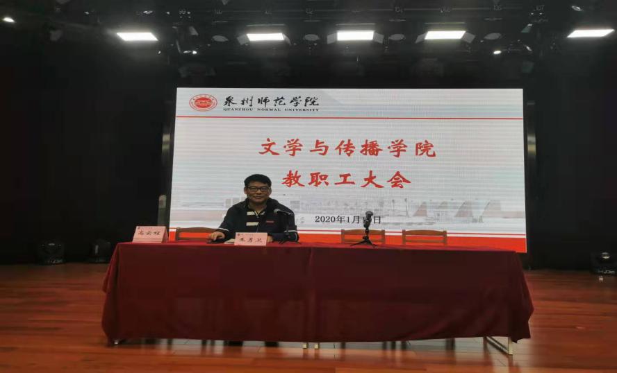 党委书记王勇卫通报了2019年度学院在师资队伍建设、人才培养、思政党建工作、环境建设等方面取得的成绩,传达了全校中层领导干部会议精神,他指出,学校“三步走”发展战略已经到了关键时期,实现2022年更名大学的目标任务紧迫,需要全校教职员工的共同努力。会议还通报了年终绩效分配方案及具体情况。