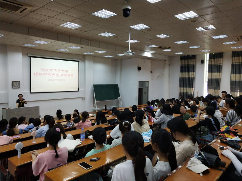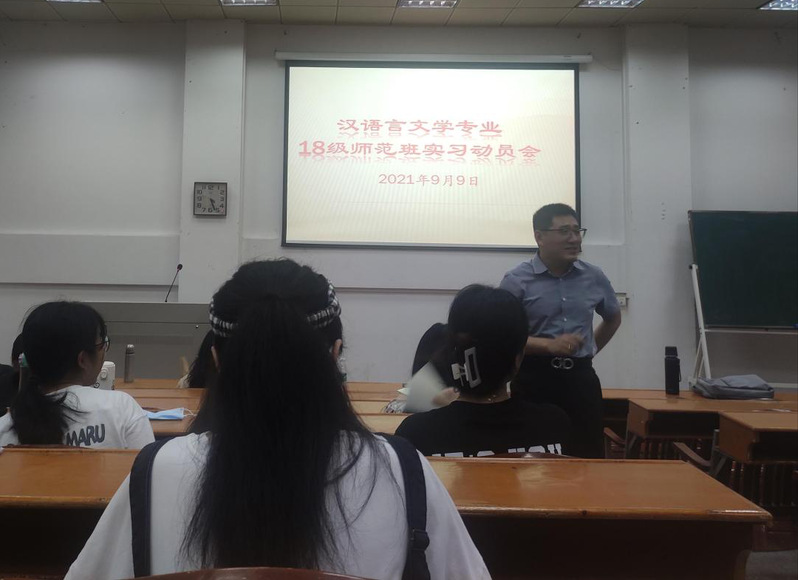 为提高师范生自身职业素养和职业技能,明确见习目标与方向,提高教育见习工作的质量和效益,保证教育实习活动顺利开展,文传学院于9月9日在教学楼文A314召开2018级中文师范专业毕业生实习动员大会。学院中文系王伟主任、李莉副主任、实习带队教师及18级中文师范专业全体同学参加了此次大会。会议由李莉副主任主持。
