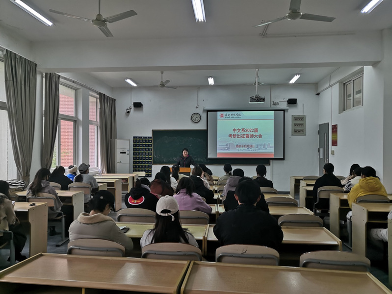 为激发学生考研斗志,增强考研学子备考信心,12月23日下午,中文系于俊秀东楼312教室召开了2022届毕业生考研誓师大会。中文系两位主任出席此次大会。