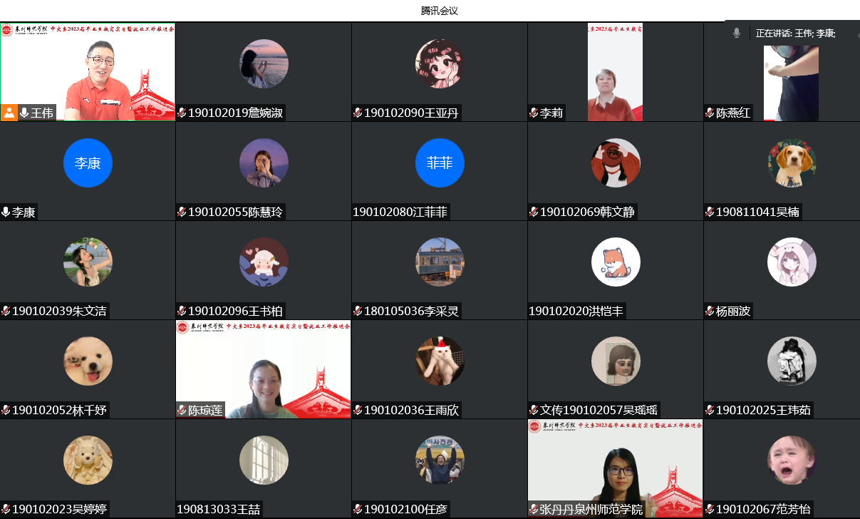 为了落实师范专业认证的指标要求,推动汉语言文学省级一流本科专业建设,支撑教育硕士专业学位授权点(培育)的创建工作,文传学院中文系于8月21日通过腾讯会议系统,线上举办“汉语言文学专业2023届毕业生教育实习暨就业工作推进会”,传达文件精神,强调注意事项,部署具体工作。会议由中文系主任王伟主持,分管实习实训工作的副主任李莉,学工办主任陈燕红,学科教学语文团队骨干教师曹茂才、陈琼莲、张丹丹,汉语言文学专业2019级全体同学参加本次会议。