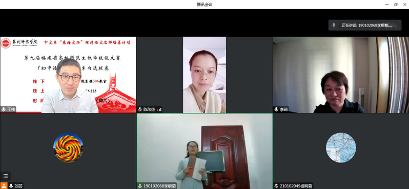为了进一步提升师范生的教学技能水平和就业竞争力,推进汉语言文学省级一流专业建设,支撑教育硕士专业学位研究生授权点(培育)创建,文传学院中文系于10月15日,采用线上与线下相结合的方式,举办“第九届福建省高校师范生教学技能大赛(初中语文)专业初选赛”。本次活动由中文系主任、副主任、学科教学(语文)团队骨干教师担任评委,教学科研办主任、汉语言文学专业部分师生到场观摩。