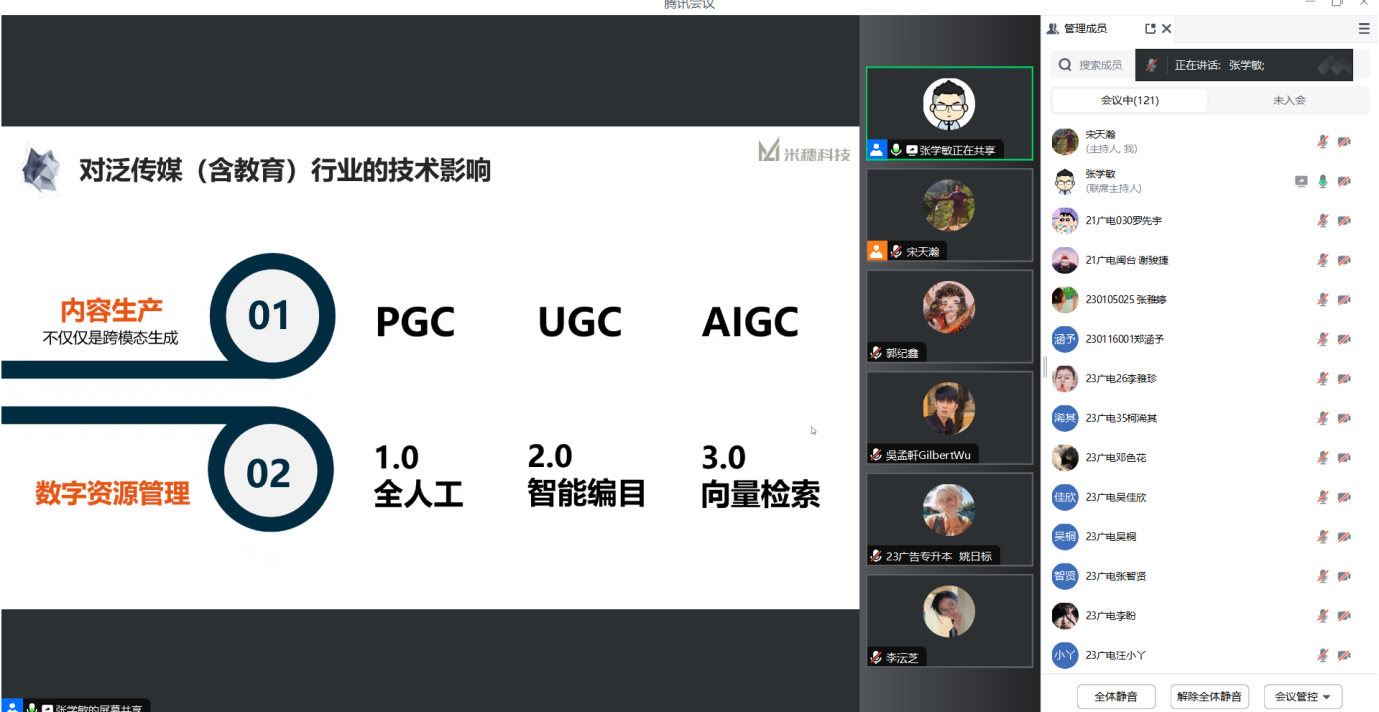 5月23日,文学与传播学院语言与传媒实验中心成功举办了首次AIGC研讨会,主题为《从文字到影像AIGC图文生成助力教学的现况与应用》。本次研讨会特邀北京米穗科技创办人、知名企业讲师张学敏先生担任主讲嘉宾。张学敏先生同时也是北京师范大学人工智能学院、河南大学和西北政法大学新闻传播学院的企业讲师。