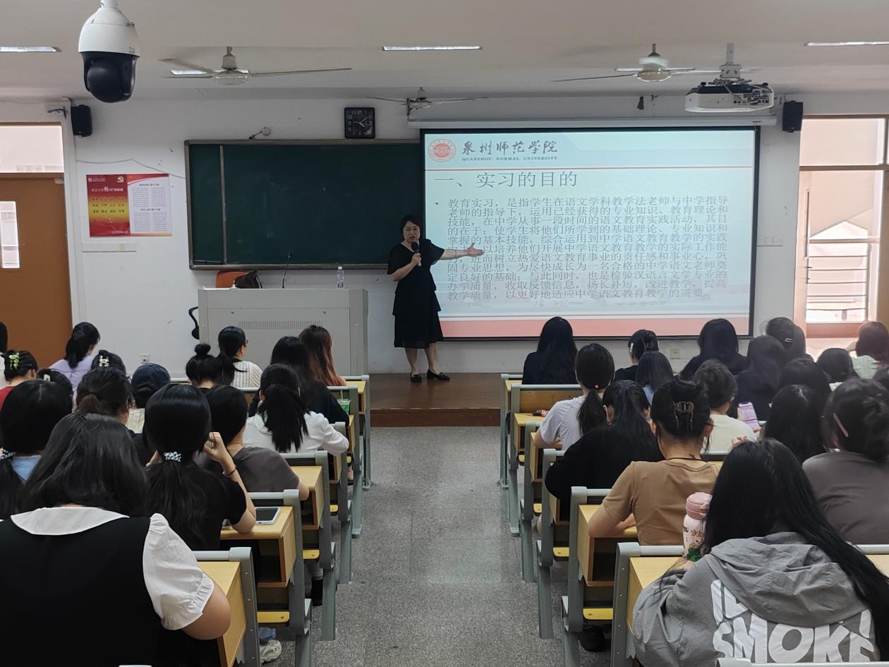随后,文传学院相关职能部门负责人以《迈向新征程,登顶新高度》为题,重点介绍此次实习的前期准备、具体要求、基本流程及目标意义,勉励中文学子在即将到来的“16周实习+2周研习”当中,切实学会“前瞻性思考”与“系统性规划”,“努力守好‘教师职业能力’和‘考研深造机遇’两份家当,当好实习教师、就业主体、招生大使三个主角”。