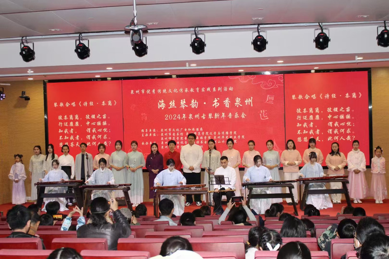 值得一提的是,古琴作为学院“诗书琴茶香”五雅文化育人中重要载体,一直备受学院重视。近年来,学院还积极联合泉州市文化广电和旅游局、泉州市图书馆等单位,共同举办了《宋元中国 书香琴韵》中国古琴艺术系列活动、《吾有琴韵 弦歌清音》古琴音乐会以及《海丝琴韵 书香泉州》2024年泉州古琴新年音乐会等一系列高雅艺术活动,通过古琴艺术的传承与发扬,为“宋元中国·海丝泉州”城市形象品牌的塑造与传播作出贡献。