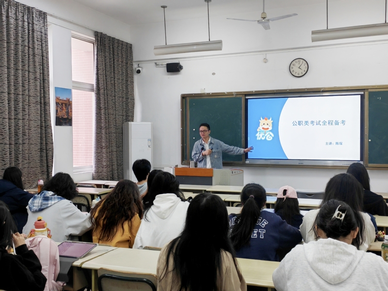 为加深我院学生对公职类考试的认识,并助力他们高效备考,11月21日午后,文学与传播学院特邀优公教育福建地区分校校长、在公考行业已从业12年的资深专家陈琛老师,开展2025年公职类备考规划专场讲座。