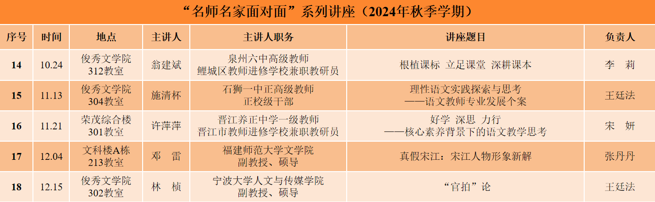 “和羹之美,在于合异;上下之益,在能相济。”在学校有关部门与文传学院的大力支持下,中文系秉承“语以塑心,文以化人,美以筑梦”系训精神,以福建省本科高校教育教学改革研究项目(FBJG20210251)、校级新文科研究与改革实践项目(2021XWK010)等课题为主要抓手,积极发挥福建省高校课程思政优秀教学案例“凝练闽南意象,讲好海丝故事”示范引领作用,放大增强福建省高校“智能MOOC(IMOOC)”典型场景“‘两个AI’双向赋能,讲好闽南‘海丝故事’”辐射带动效应,为专任教师学术成长提供“有深度”的精细化指导与“有温度”的全过程服务,进而在新的历史起点上为学校“申硕更大”贡献“中文力量”。(照片提供:郑小雅,编辑校对:王颖茹,初审:李莉,复审:王伟)