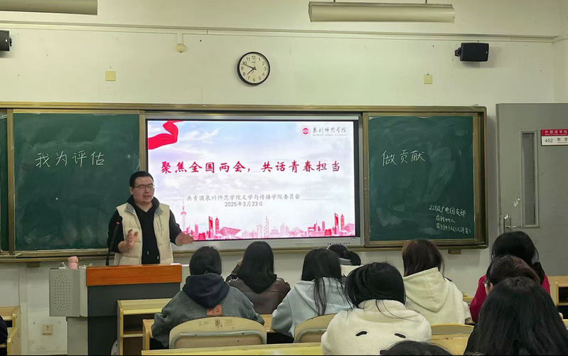 为学习宣传贯彻习近平总书记在全国两会期间的重要讲话精神和全国两会精神,引导广大团员和青年深刻把握全国两会精神的核心要义和战略部署,紧跟时政热点,凝聚青春共识。文传学院辅导员于3月19-25日在各班级开展“聚焦全国两会,共话青春担当”主题班会。