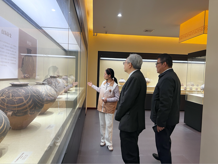 参观过程中,尤芳达校长一行认真听取讲解,仔细观摩展品,并不时互动交流,深入探讨马家窑文化的历史内涵与艺术价值。尤芳达校长表示,马家窑彩陶作为中华文明的重要遗产,充分展现了古代先民的智慧与创造力,值得深入研究和广泛传播。