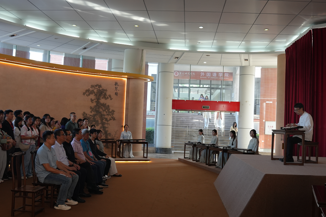 揭牌仪式结束后,与会嘉宾和师生共同欣赏了学院专职古琴教师潘贤杰先生带来的精彩古琴演奏。“客心洗流水,余响入霜钟”,优美的琴声在教室内余音绕梁,让在场的每一个人都沉浸在了古琴艺术的魅力之中。