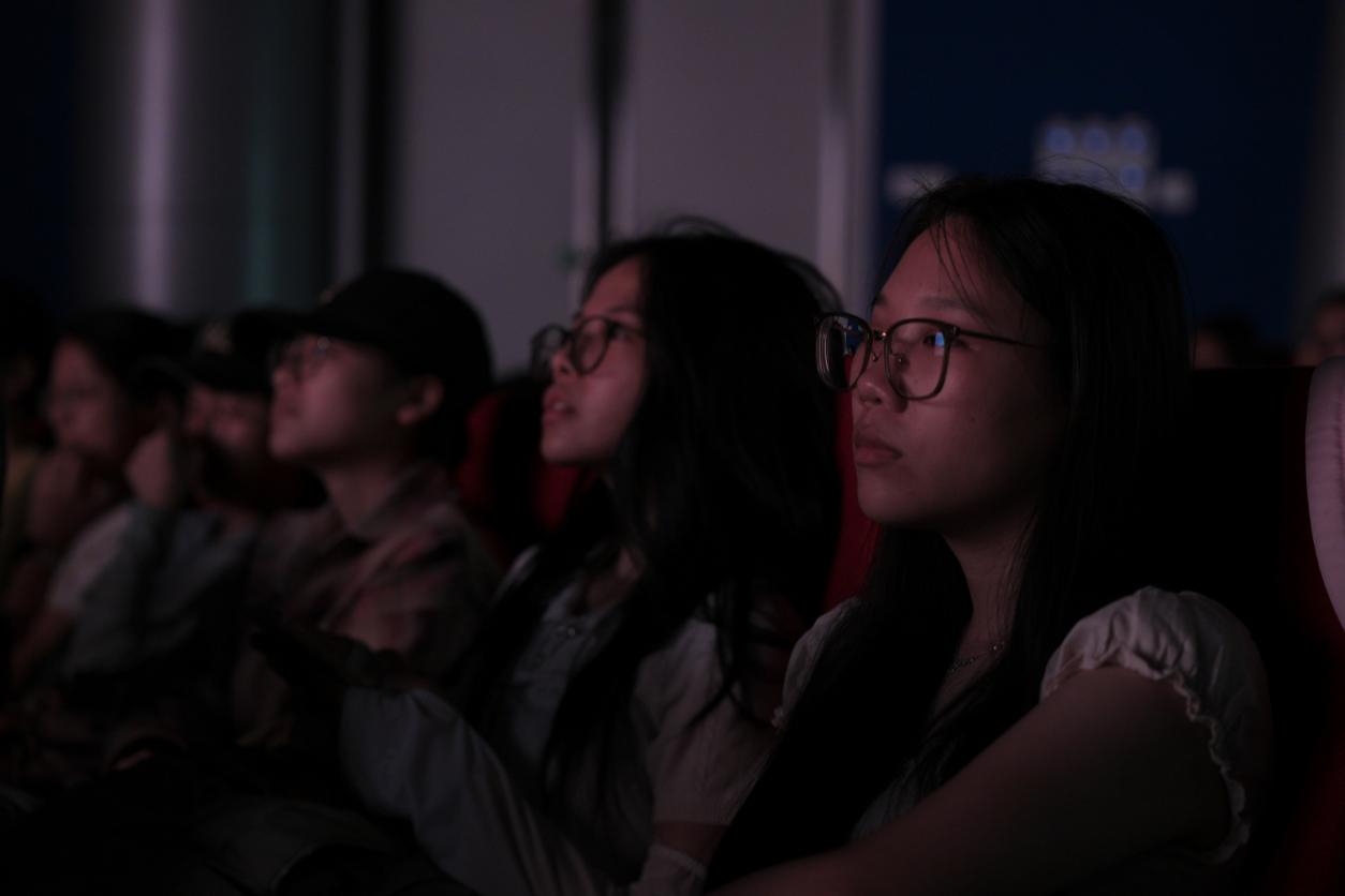随后,第4届麒麟最佳导演作品《秃羊》、第4届IM两岸青年影展主竞赛入围作品《海底世界》、第4届麒麟新锐短片《肉人:精神病人的时间》、以及第4届IM麒麟新锐短片《狗》四部优秀作品依次展映。这些作品通过细腻镜头与创新表达,将观众带入多元故事世界,现场师生沉浸在光影交织的叙事世界里。